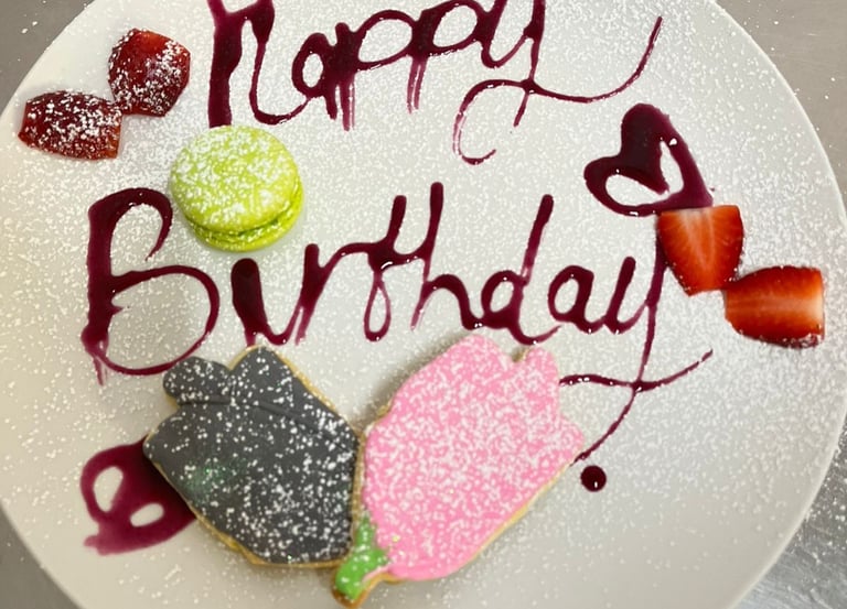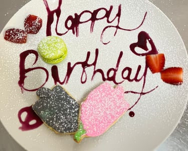 Your guests can choose from our gourmet menu selection for a delightful celebration with your loved ones, or why not have a fun chocolate fondue or some platters? We can host a long grazing table for 20 to 50 guests. Choose from our table cloths and runners to give your event some magic, or have your table plain - you decide!