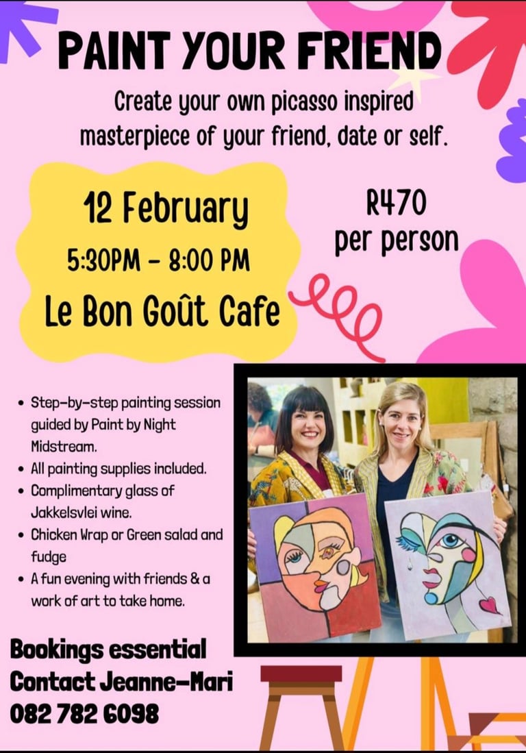 Gin tastings, wine tastings, workshops, sip and paint, biscuit decorating and more, call 082 782 6098 to arrange your customized party today!