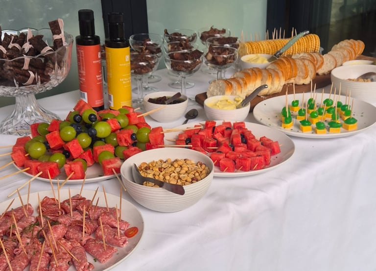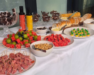 Your guests can choose from our gourmet menu selection for a delightful celebration with your loved ones, or why not have a fun chocolate fondue or some platters? We can host a long grazing table for 20 to 50 guests. Choose from our table cloths and runners to give your event some magic, or have your table plain - you decide!